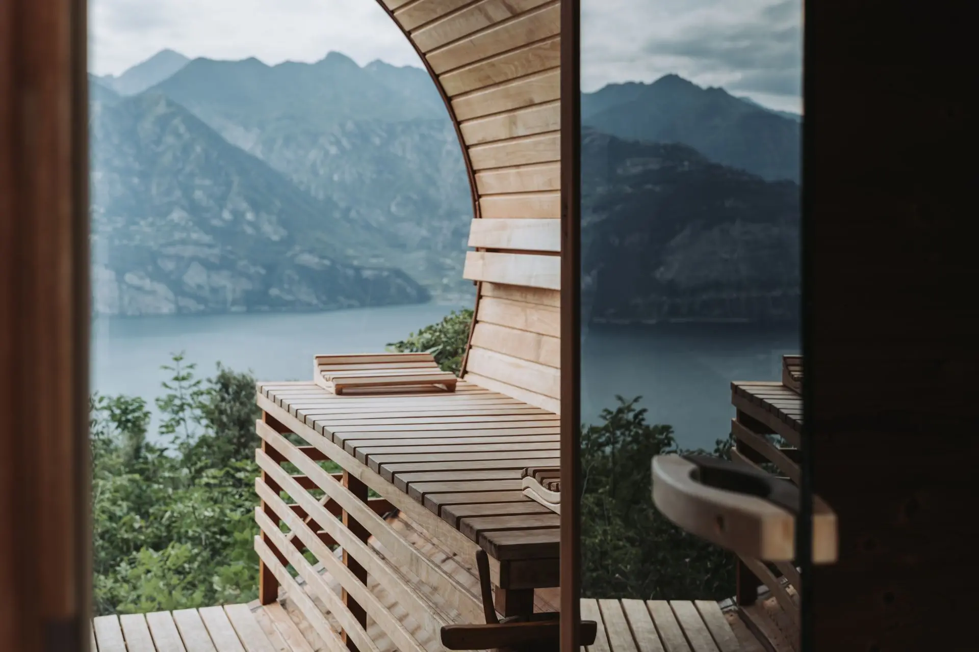 At its centre, in full harmony with the surrounding nature, is an intimate wooden sauna,