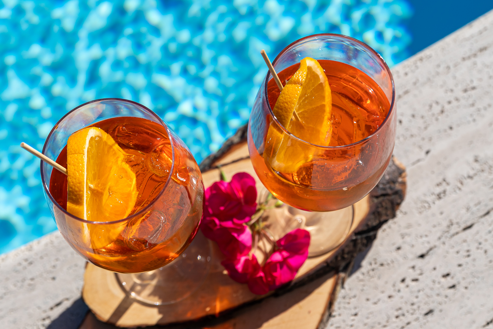 Une gorgée au bord de la piscine