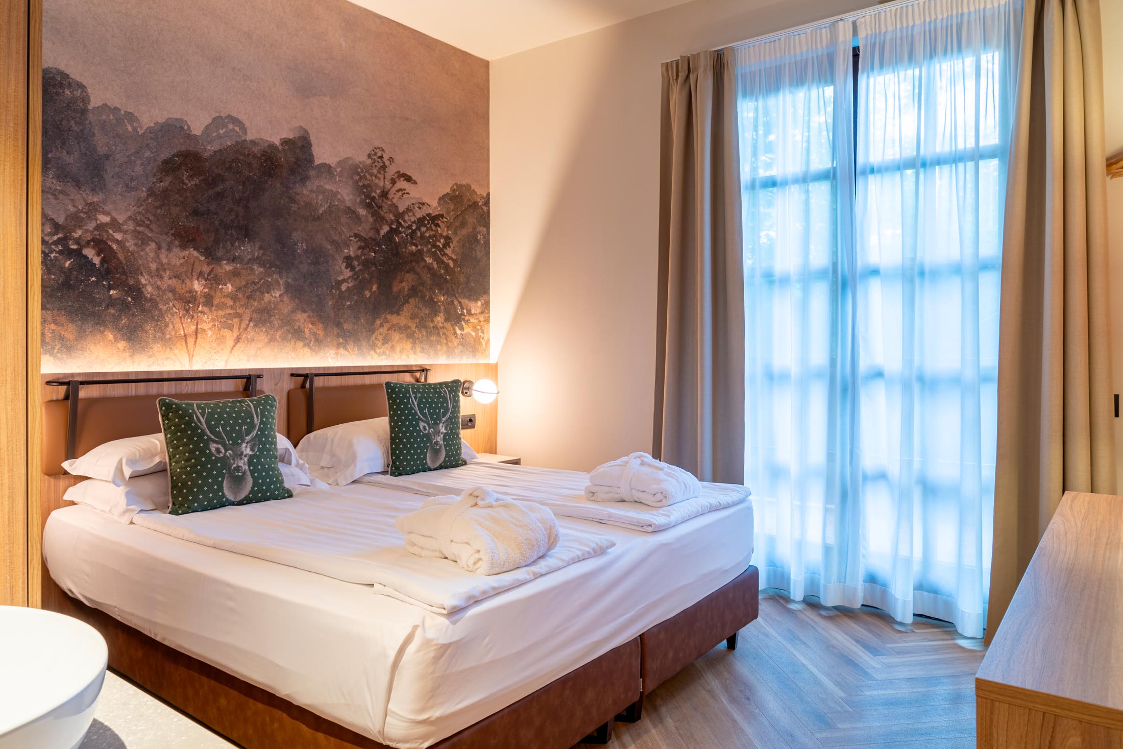 Recentemente rinnovate, queste camere sono arredate con grande cura e attenzione ai dettagli. Materiali ricercati, linee eleganti e tonalità armoniose creano un ambiente raffinato e accogliente, pensato per offrire comfort, stile e benessere.